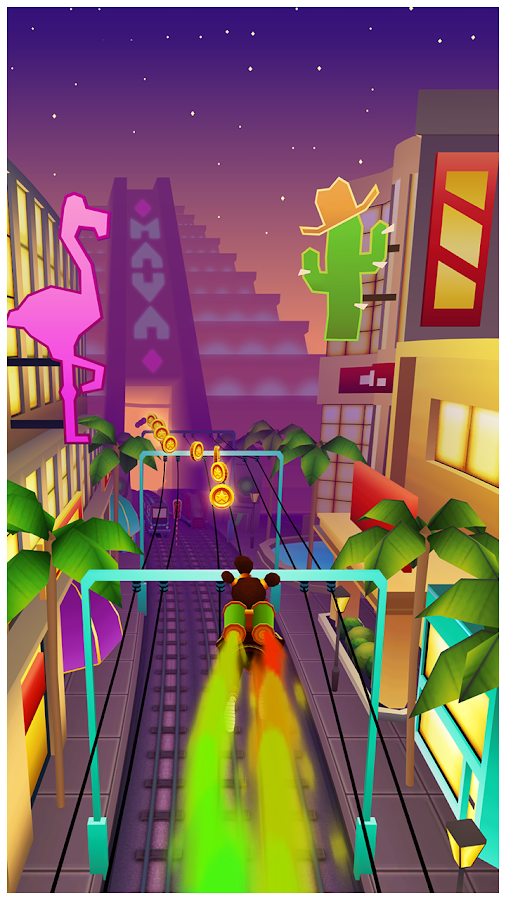 - Surf beneath the star covered sky and explore the flashy subway